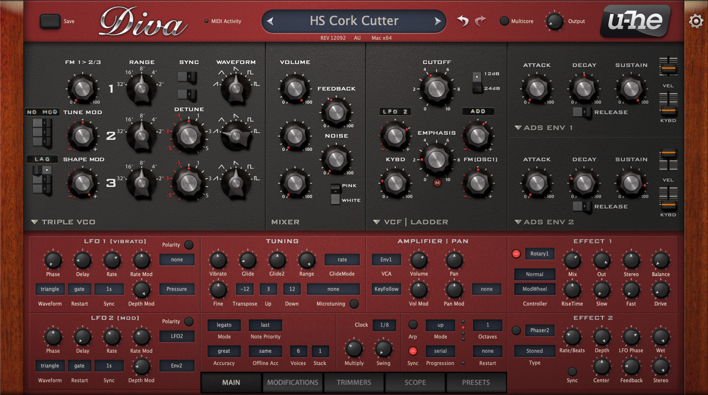 That’s not to suggest that Diva isn’t approachable and easy to use. In fact, it looks and behaves so much like a hardware synthesizer you’ve programmed in the past that the potential lurking behind the panel might not be obvious at first glance. But after flipping through the generous library of factory patches – and creating more than a handful of my own along the way – I began to understand why Diva continues to appear on so many top 10 analogue emulator lists nearly a decade after its initial release.